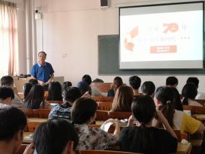 9月17日下午,思政部主任李成教授为经管系18级国际金融1班、互联网金融1班合投资理财1班上“开学第一课”,李教授以 “壮丽70年,奋斗新时代”为课题,讲述了中华民族和中国人民70年披荆斩棘、波澜壮阔的历史征程,为同学们上了一堂生动的爱国主义教育课。