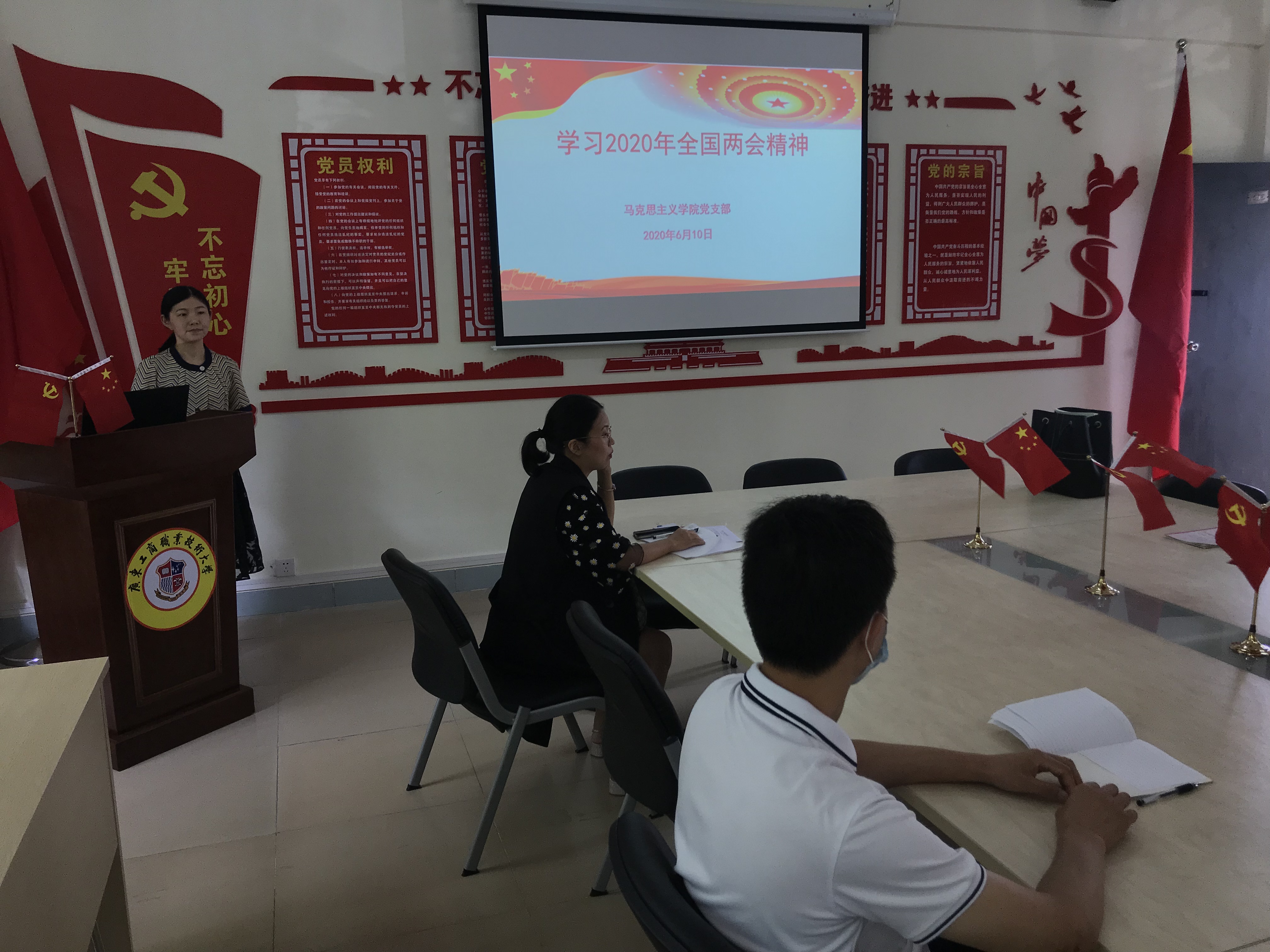 为深入学习贯彻全国“两会”精神,凝心聚力搞好我校思政工作,6月17日下午,永利集团3044欢迎你党支部在坚韧楼305室学习2020年全国“两会”精神。