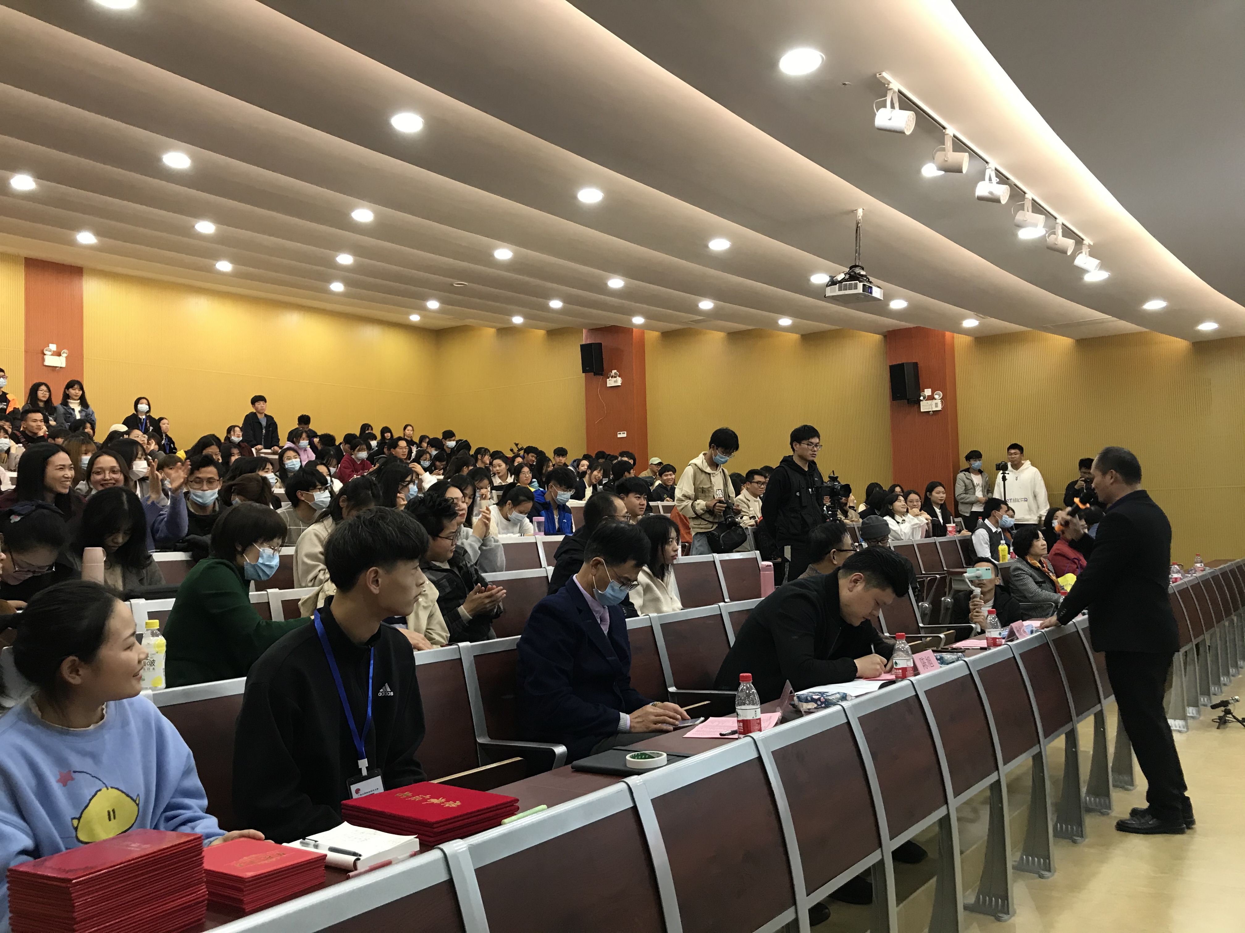 比赛虽已落幕,但选手们的演讲声依然余音绕梁,同学们还不愿离开现场,恋恋不舍地与评委老师交流、拍照留念。