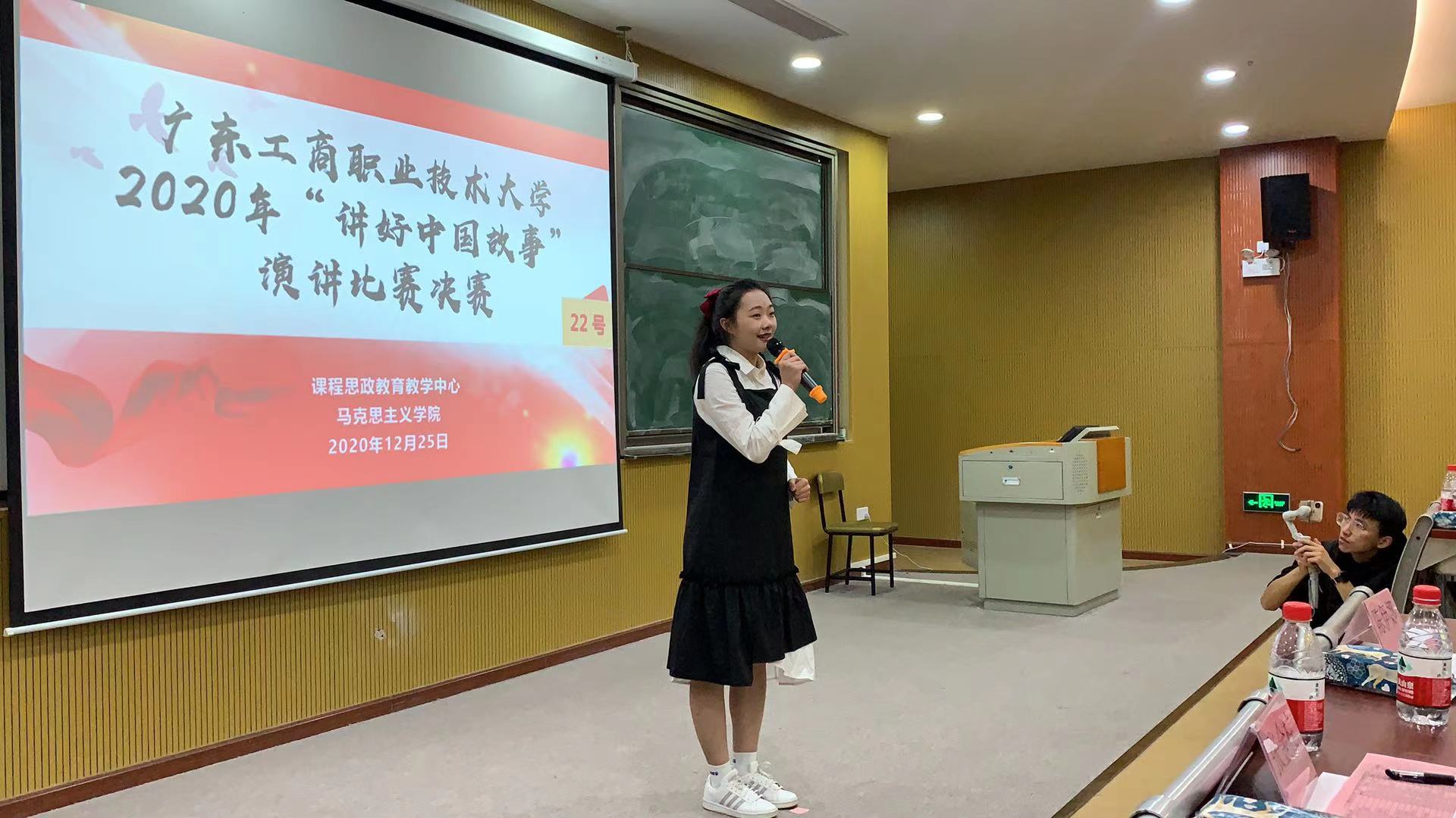 12月25日晚,博学楼113室灯火通明,座无虚席,由广东工商职业技术大学大学生职业技能竞赛工作委员会主办、广东工商职业技术大学课程思政教育教学中心和永利集团3044欢迎你承办的2020年第一届“讲好中国故事”演讲比赛总决赛在此举行。