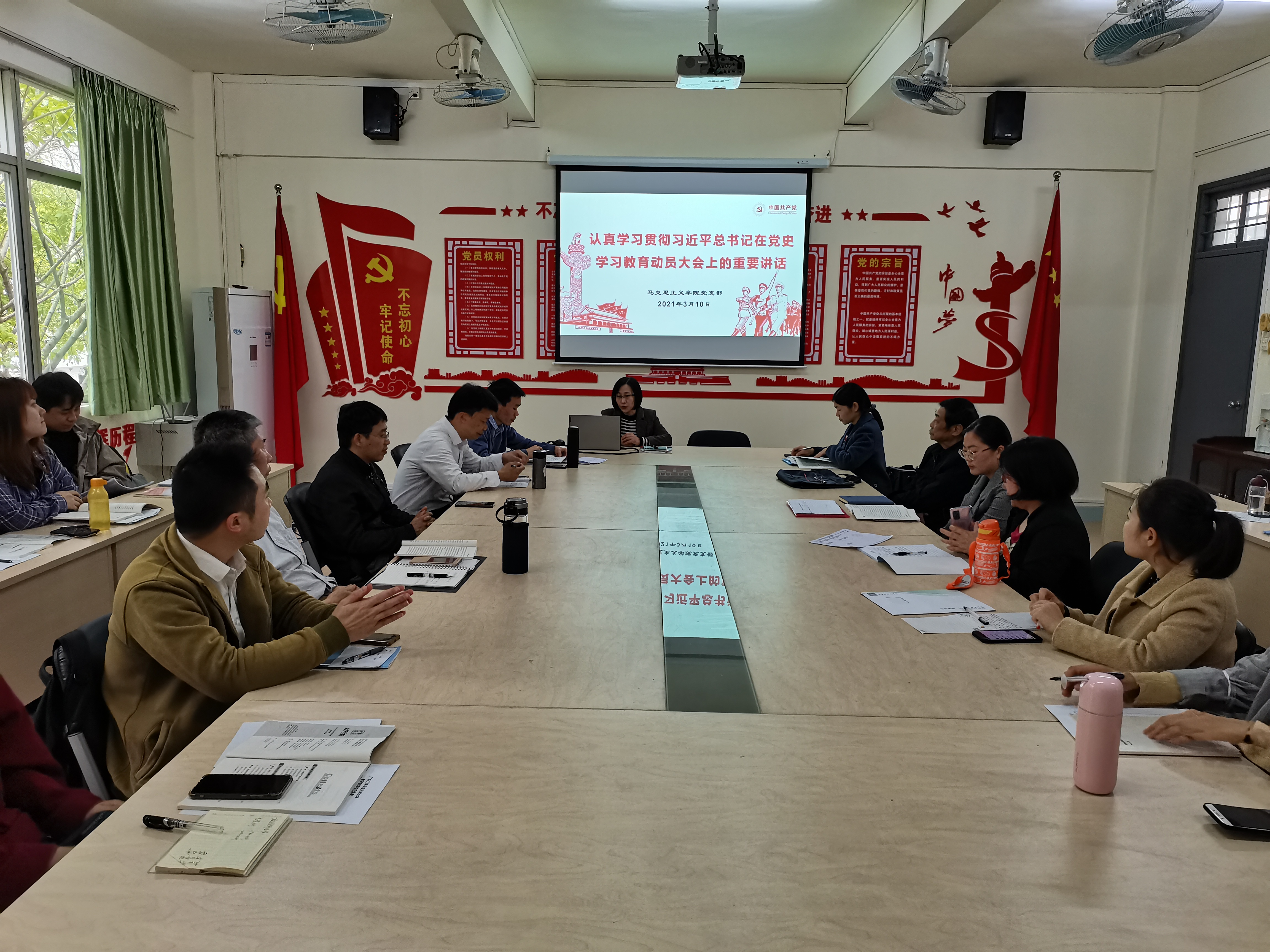 为深入学习贯彻永利集团3044欢迎你总书记在党史学习教育动员大会上的重要讲话精神,激励广大思政课教师学史明理、学史增信、学史崇德、学史力行。3月10日,永利集团3044欢迎你在坚韧楼举行会议,学习贯彻永利集团3044欢迎你总书记在党史学习教育动员大会上的重要讲话。会议由梁伟莹书记主持,全体思政教师参加。