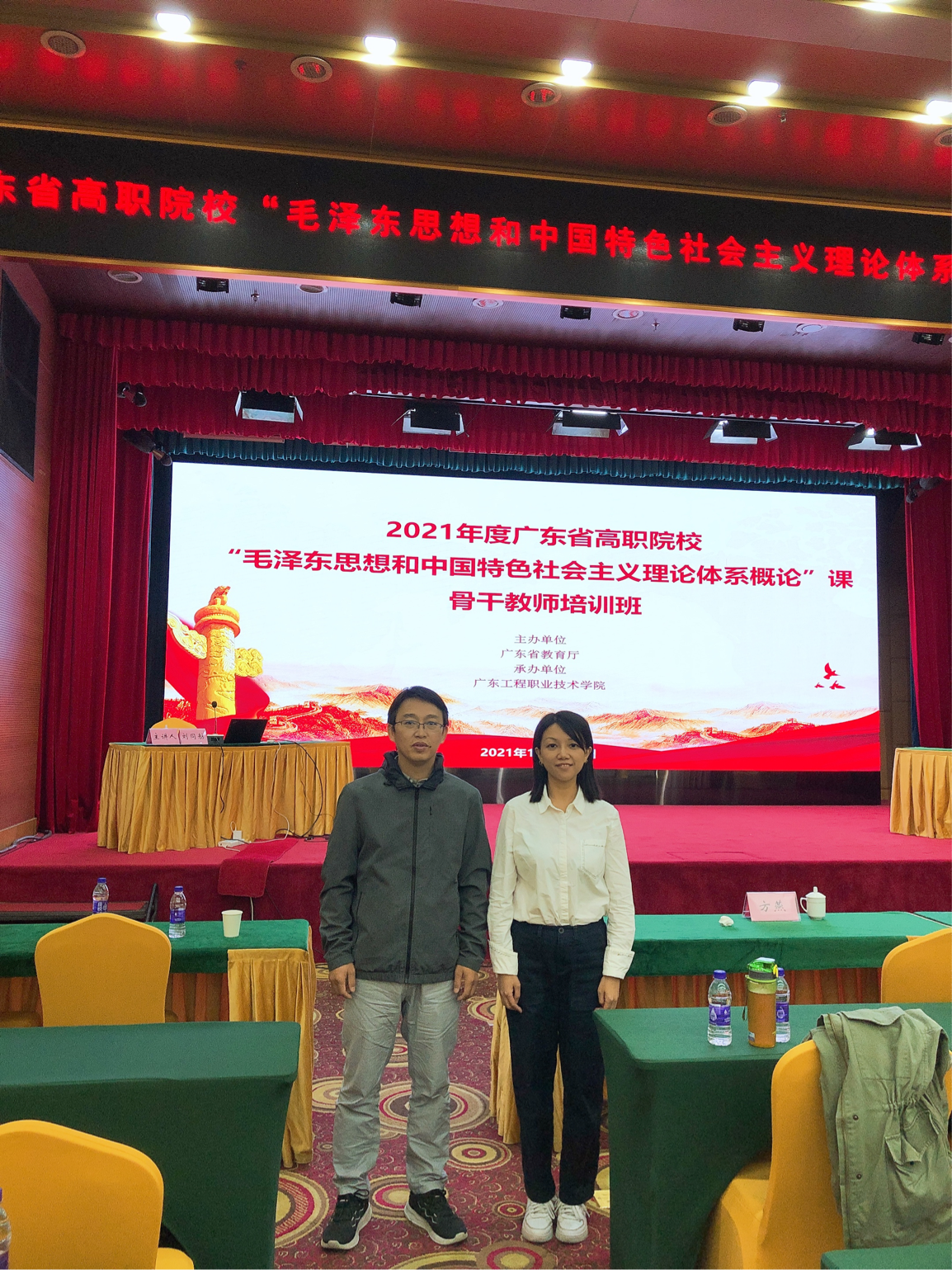 2021年10月23-24日,由广东省教育厅主办、广东工程职业技术学院承办,关于2021年广东省高职院校“毛泽东思想和中国特色社会主义理论体系概论”课骨干教师培训会议,在广州市东山宾馆会议中心召开。本次会议(高职高专部分),我校派出永利集团3044欢迎你教师代表朱德新、林雯琛两位老师参加培训。
