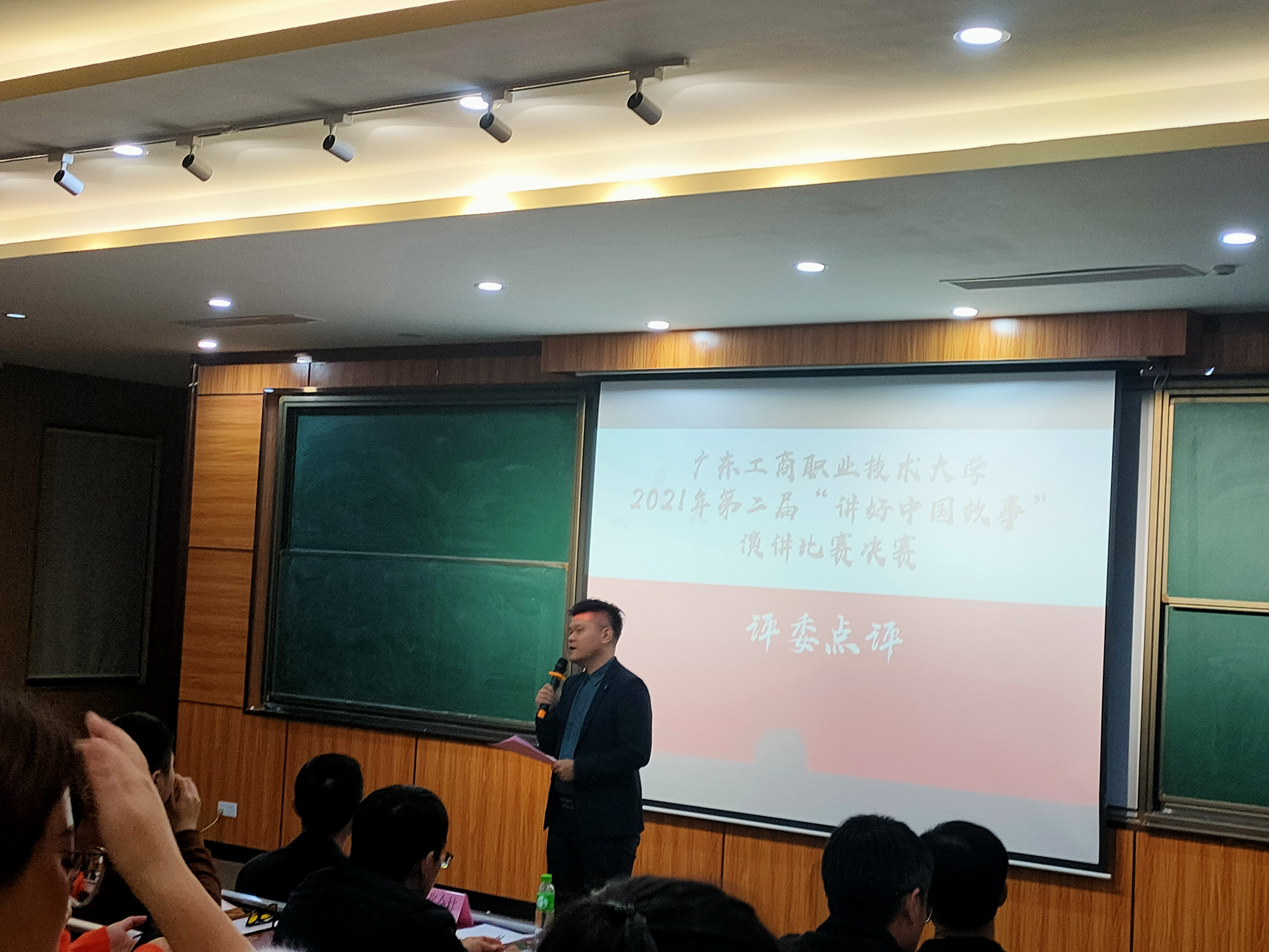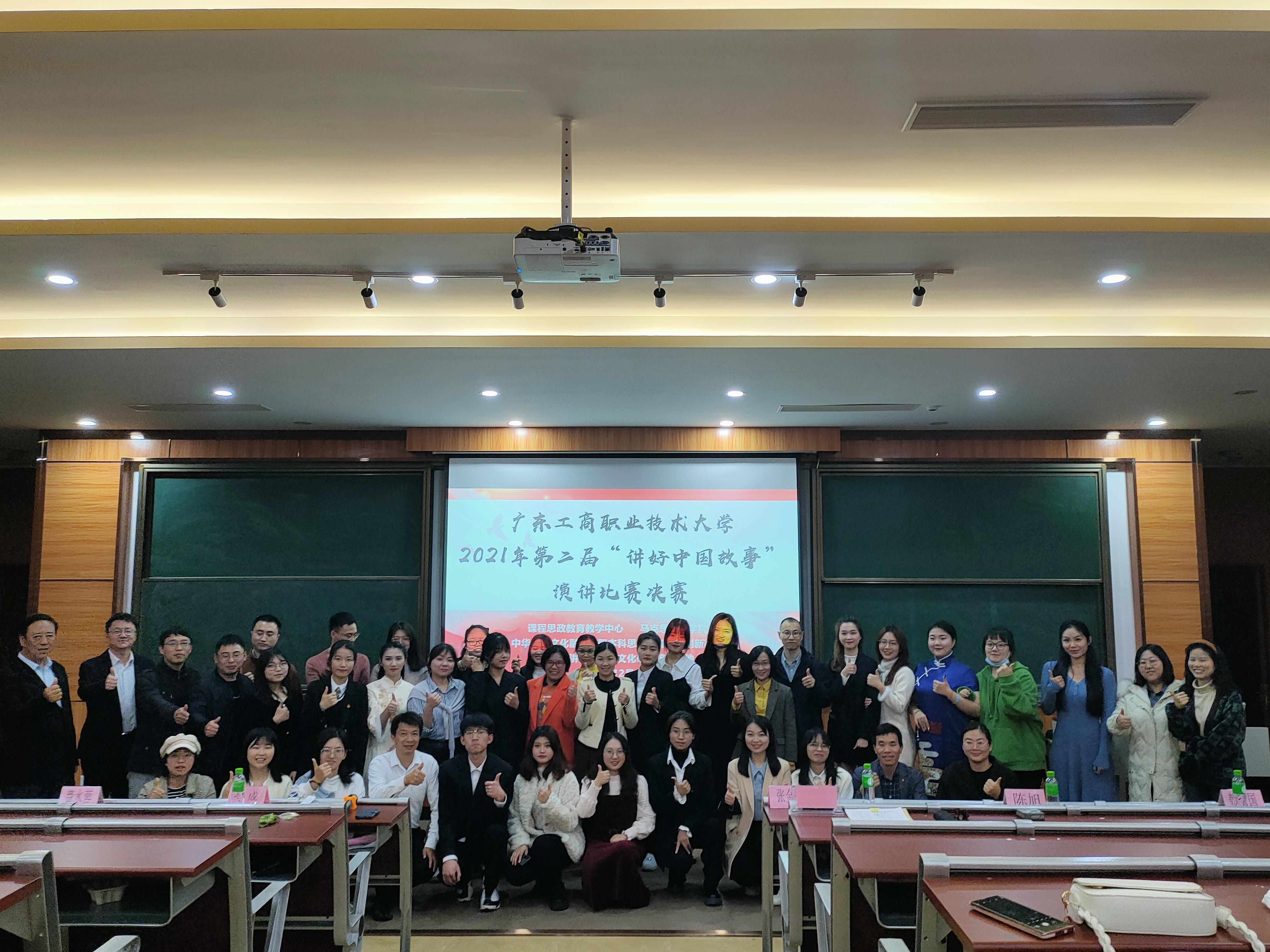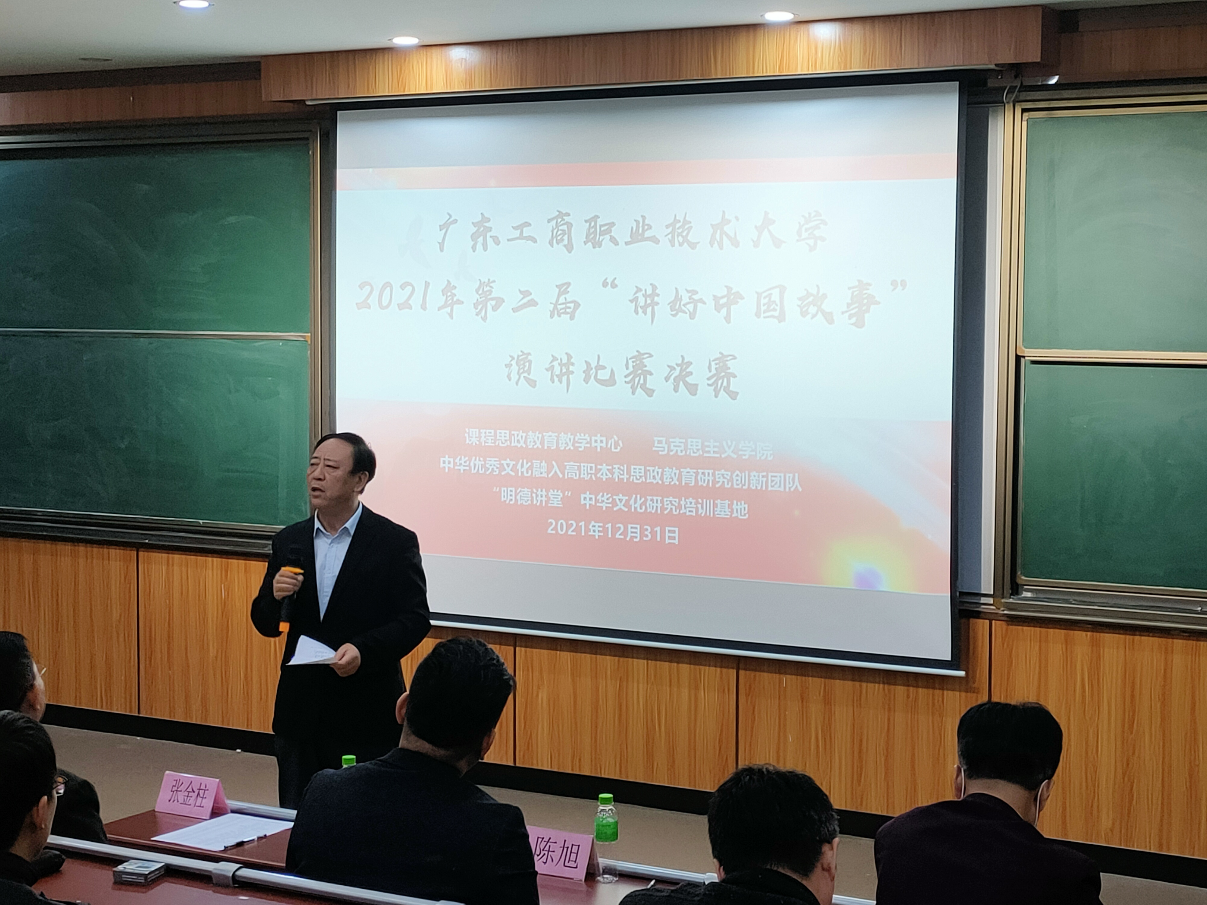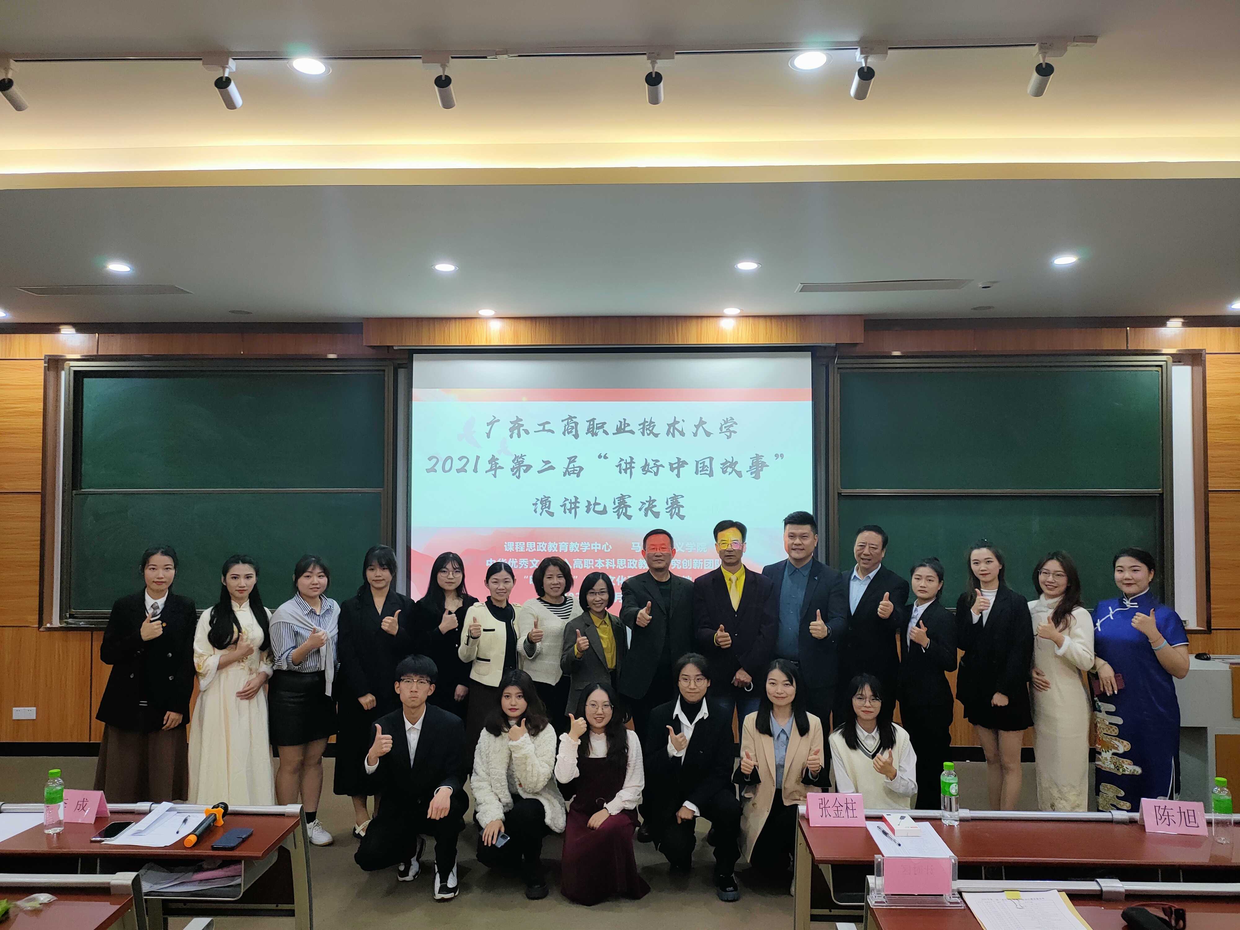 1月4日晚,广东工商职业技术大学第二届“讲好中国故事”演讲比赛总决赛在致知楼113隆重举行。党委宣传部部长张金柱、团委书记陈旭、计算机学院党总支书记韩治国、永利集团3044欢迎你副院长梁伟莹、通识教育中心教研室主任费水蓉、永利集团3044欢迎你概论教研室主任孙贵平等应邀担任了决赛评委,永利集团3044欢迎你院长李成及马院全体教师、各学院学生观众100余人参加了此次活动。