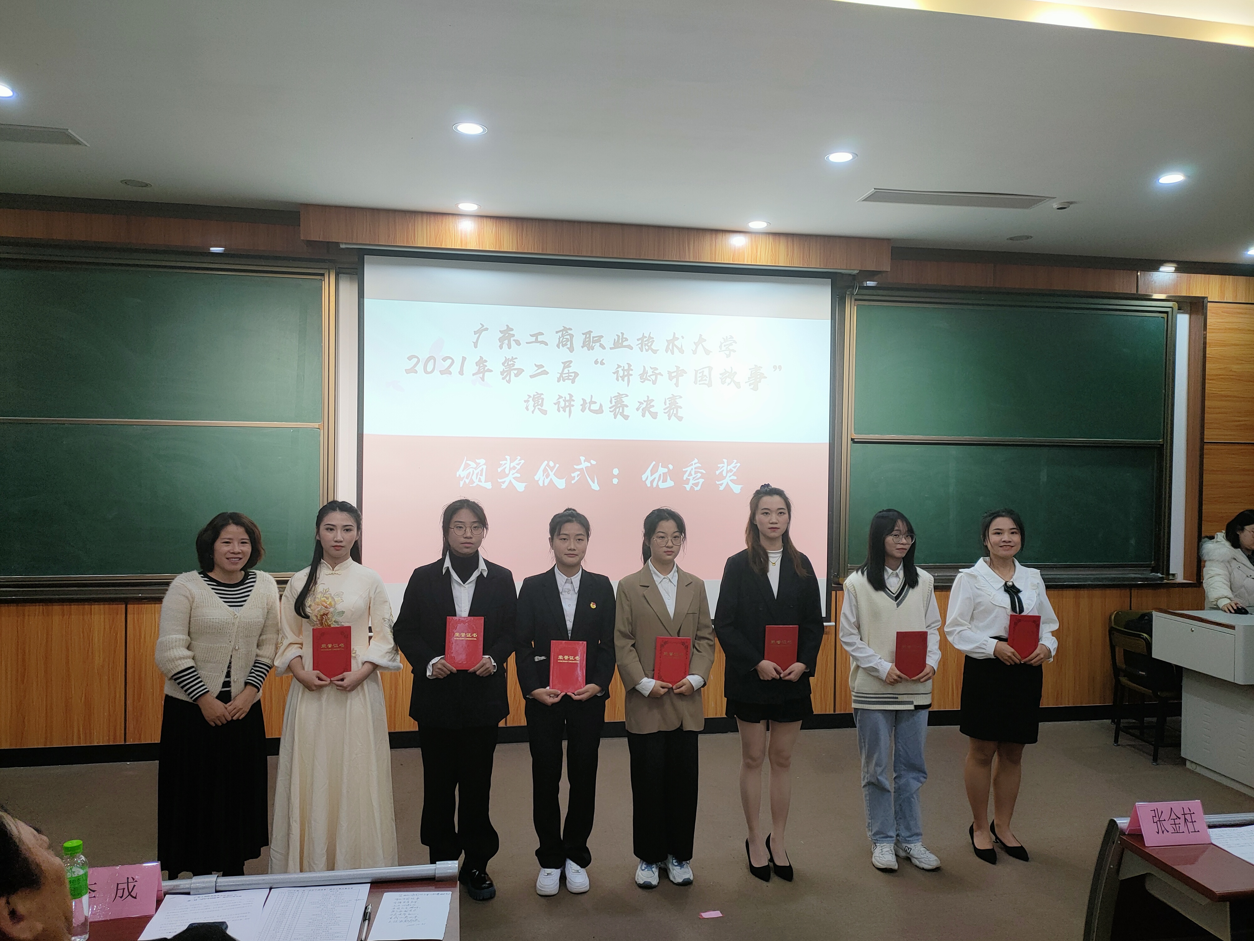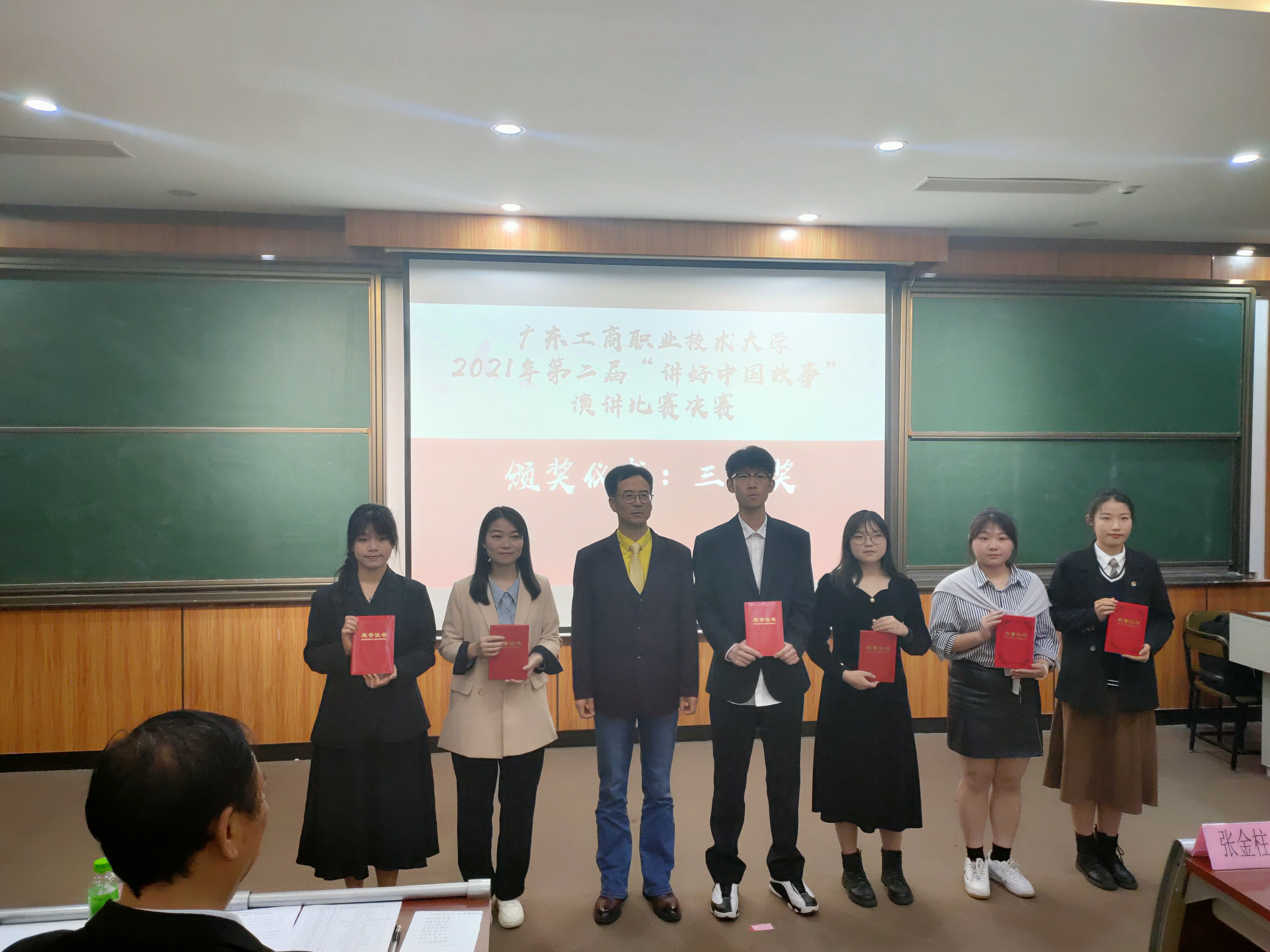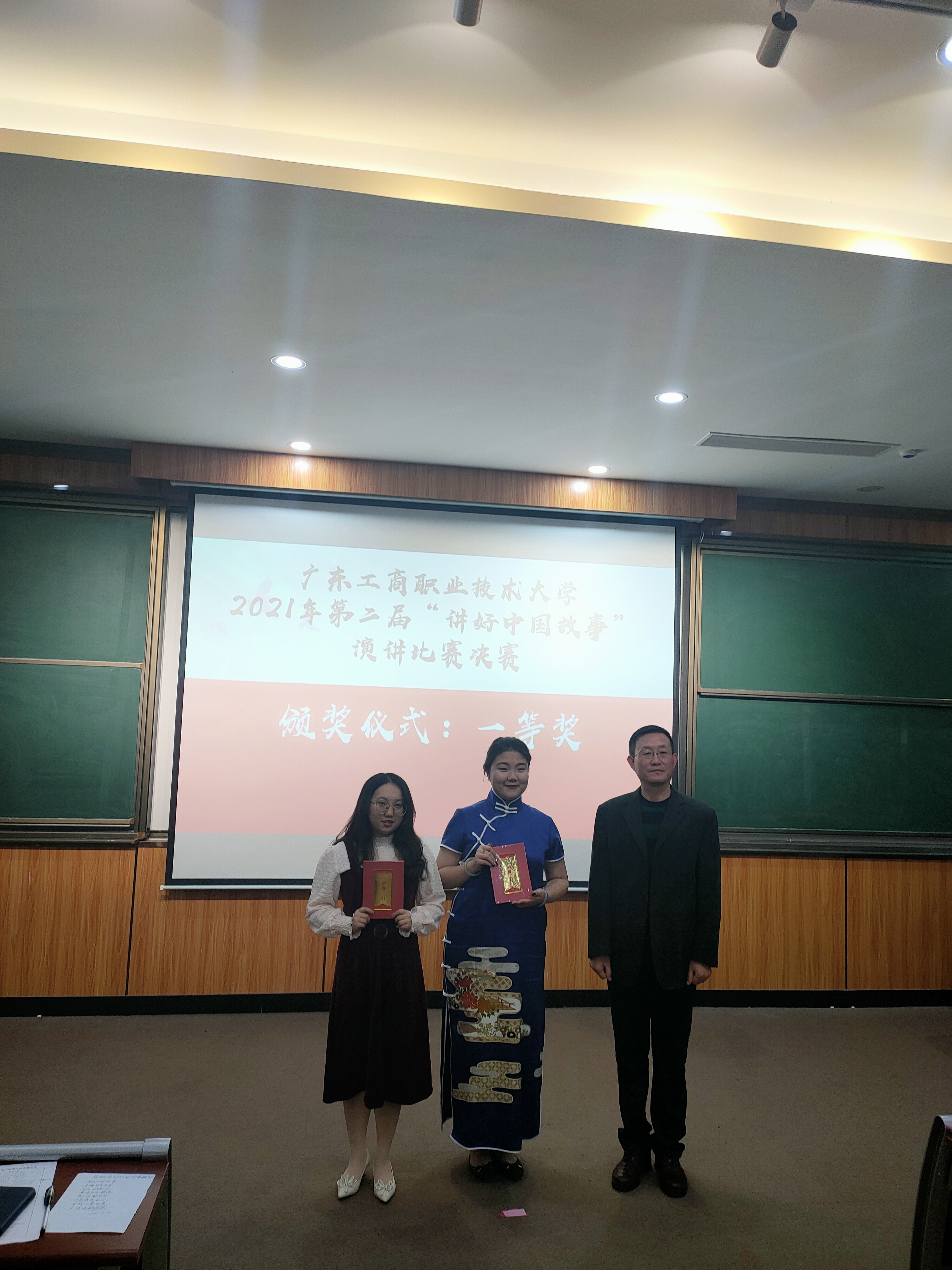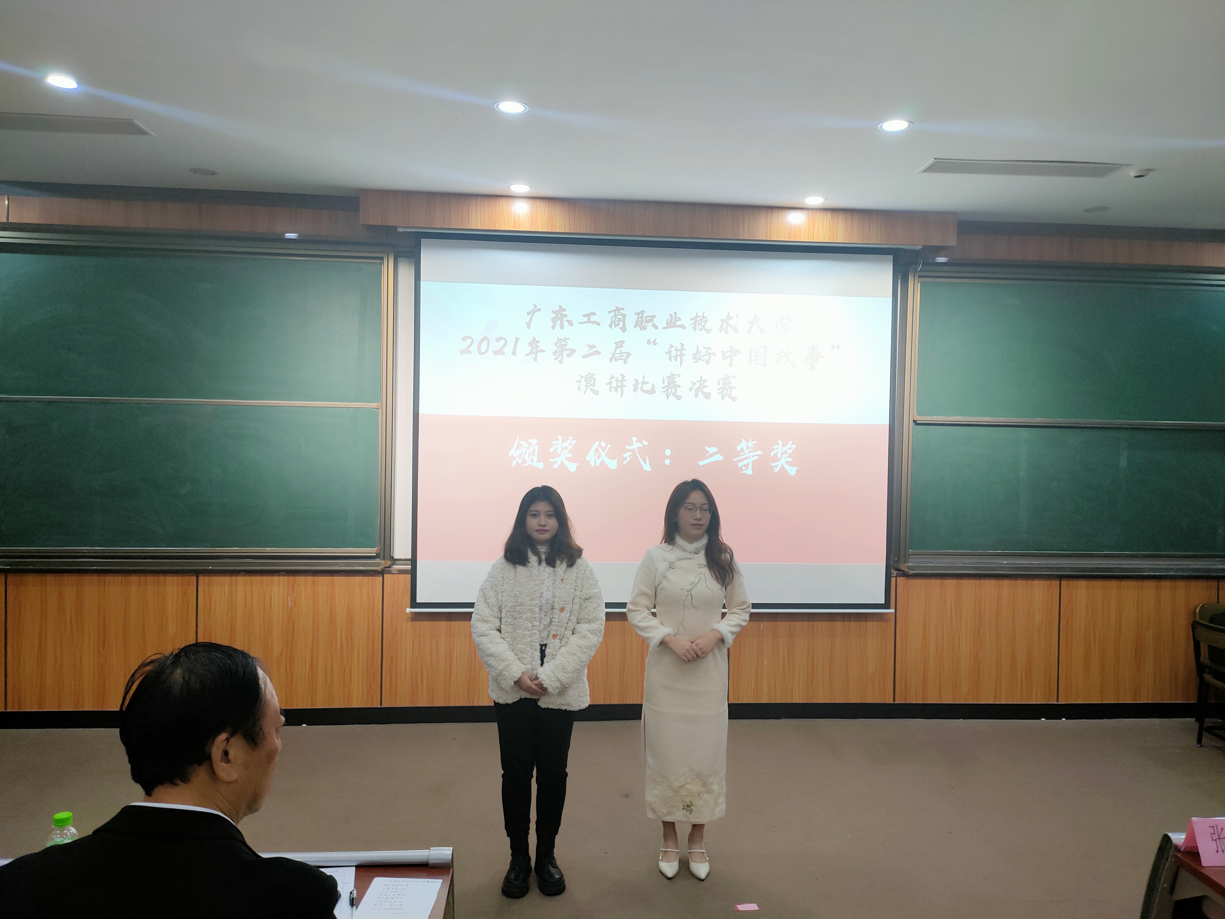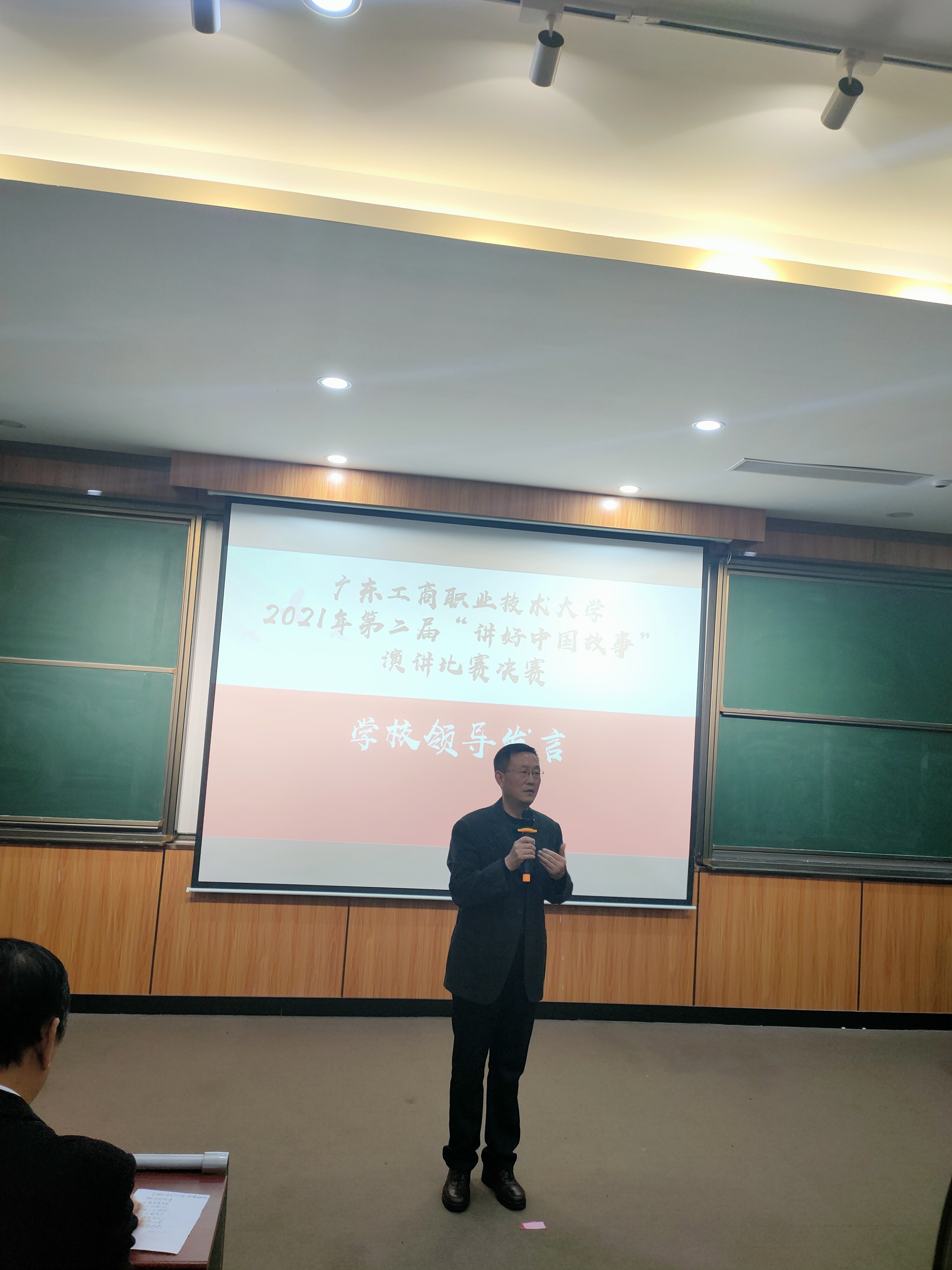 1月4日晚,广东工商职业技术大学第二届“讲好中国故事”演讲比赛总决赛在致知楼113隆重举行。党委宣传部部长张金柱、团委书记陈旭、计算机学院党总支书记韩治国、永利集团3044欢迎你副院长梁伟莹、通识教育中心教研室主任费水蓉、永利集团3044欢迎你概论教研室主任孙贵平等应邀担任了决赛评委,永利集团3044欢迎你院长李成及马院全体教师、各学院学生观众100余人参加了此次活动。