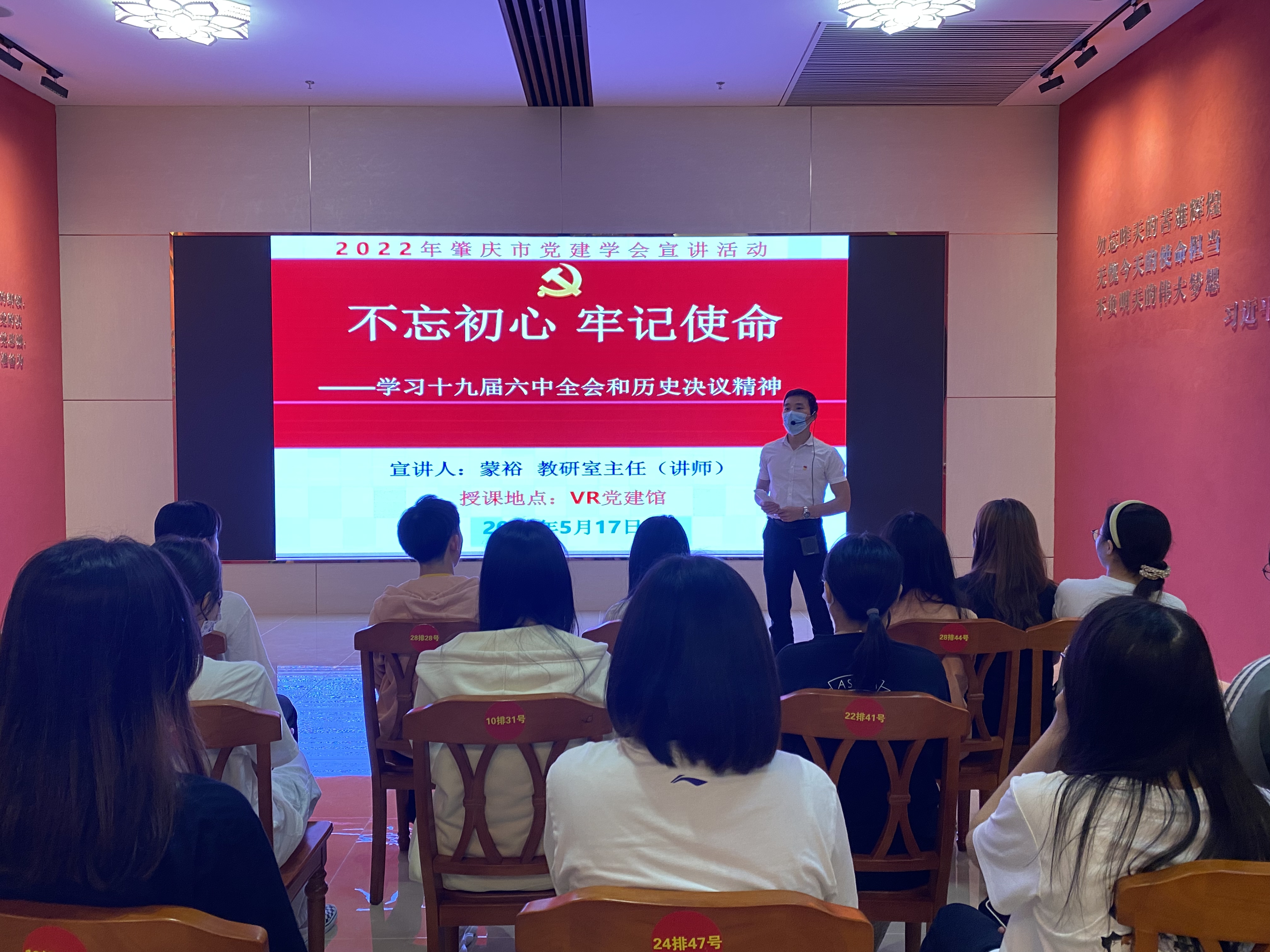 图为蒙裕老师在馆内开展“学习十九届六中全会和历史决议精神”