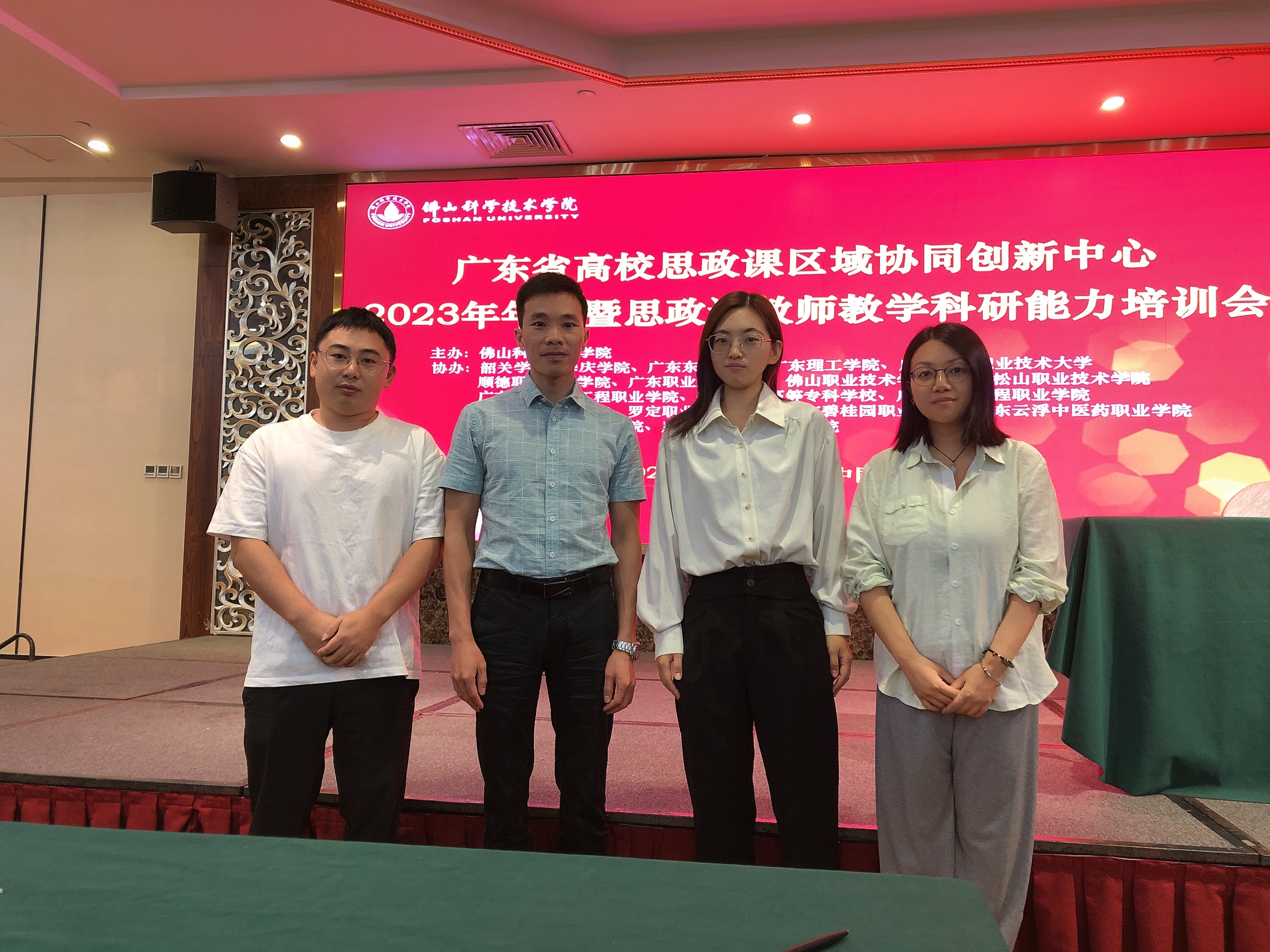 10月27日-29日,永利集团3044欢迎你蒙裕老师、李鹏老师、林雯琛老师与王晓洁老师前往佛山参加为期一天半的广东省高校思政课区域协同创新中心2023年年会暨思政课教师教学科研能力培训会议。10月28日上午,佛山科学技术学院教务处处长古广灵教授为本次会议致开幕词,佛山科学技术学院马院党委书记杜环欢教授向与会教师做广东高校思政课区域协同创新中心年度工作小结。古教授与杜教授从“学思用、知行性”六个词勉励全体与会思政课教师要聚焦大思政课,提高自身教学科研能力,讲好理论,讲透道理;要做好精师、成为人师。